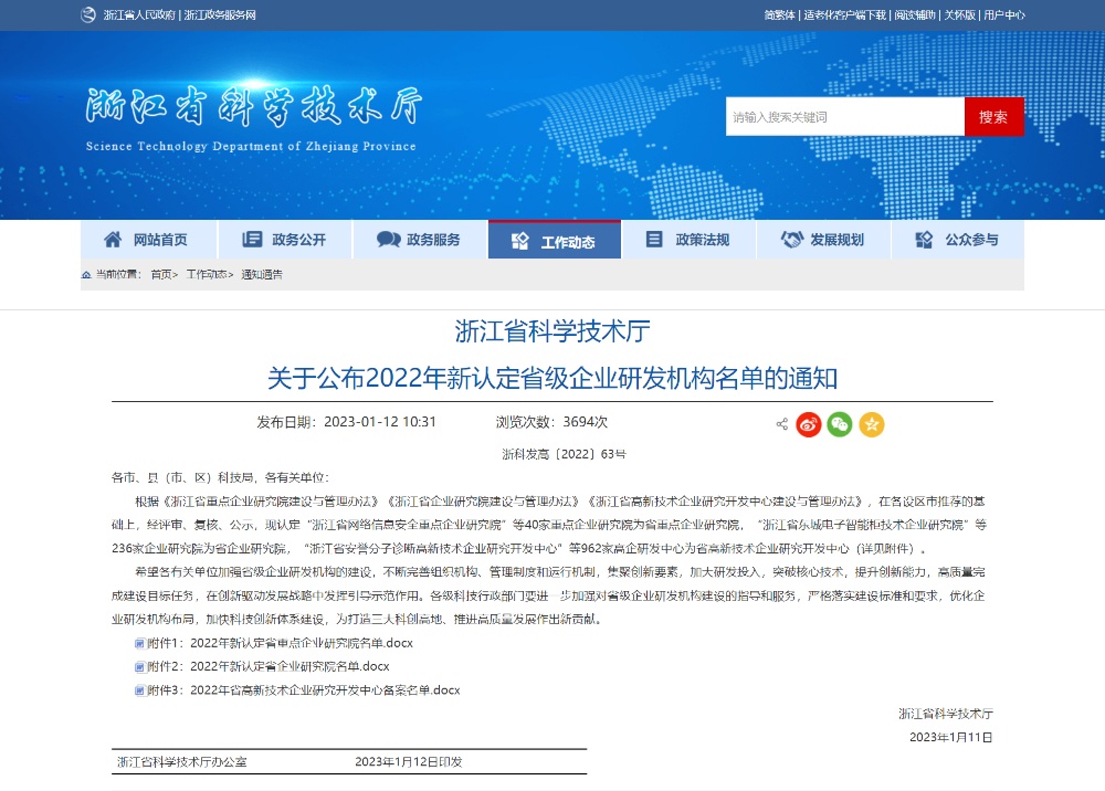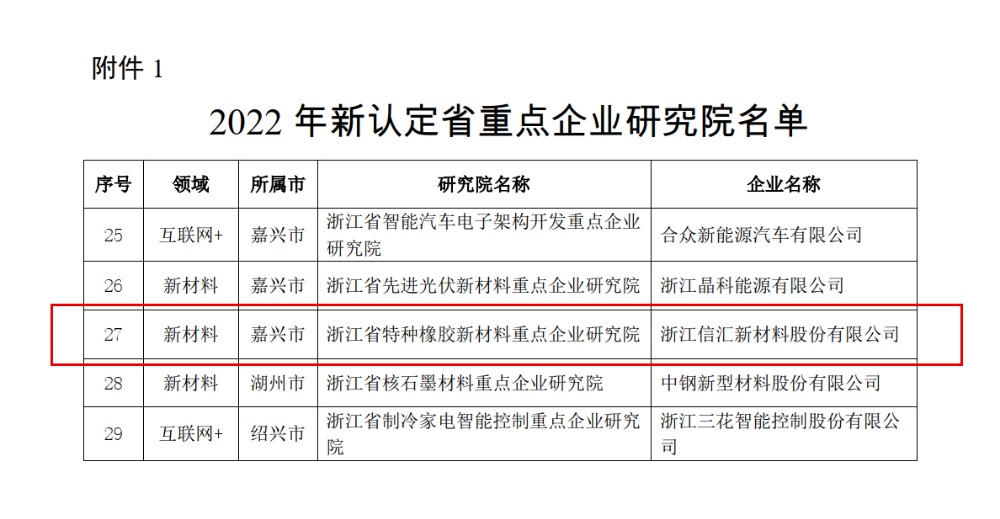 浙江信匯成功入選2022年度浙江省重點企業研究院 2023-01-21 13:38:52 浙江信匯新材料股份有限公司 Viewd 5590 近日,浙江省科學技術廳公布了《2022年新認定省重點企業研究院名單》,信匯材料的“浙江省特種橡膠新材料重點企業研究院”順利通過審核、評審以及公示等環節,被認定為“2022年省重點企業研究院”。信匯材料將以省重點企業研究院的認定為契機,通過科技創新推動企業轉型升級,提升產品的核心競爭力,為客戶創造不可替代的價值。 Previous浙江信匯召開碳管理項目啟動會 Next辭舊迎新送祝福,納祥接福度佳節!