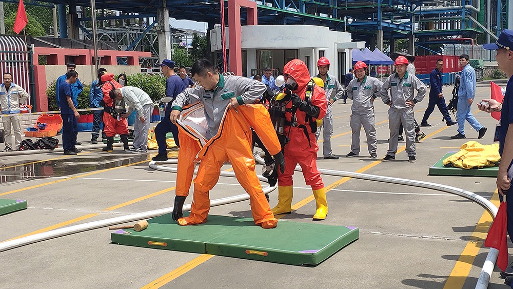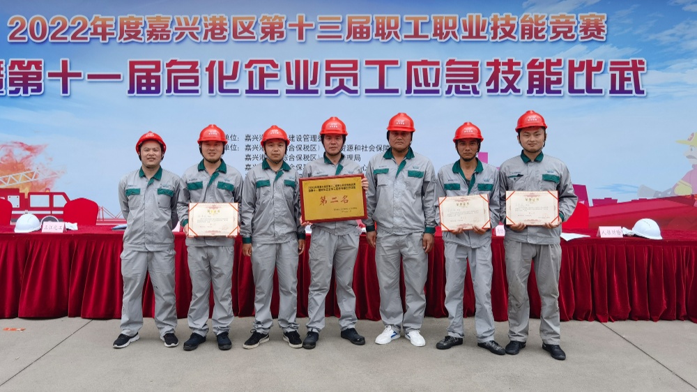 6月23日,嘉興港區2022年度第十三屆職工職業技能競賽暨第十一屆?;髽I員工應急技能比武順利舉行。嘉興港區管委會領導,應急管理局、人力社保局、總工會、消防救援大隊、應急響應中心、中國人保港區支公司等部門、單位負責人蒞臨觀摩。在與37支企業代表隊的角逐中,浙江信匯代表隊以敢打敢拼、精誠合作的團隊精神奪得團體總分第二名。